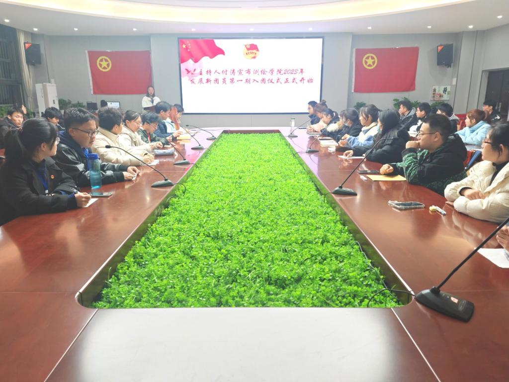 团委于院楼101会议室举办新团员入团仪式,仪式由秘书处付涛主持,我院学工办主任丰习才、2023年第一期发展新团员和团委综合办公室全体成员参加。