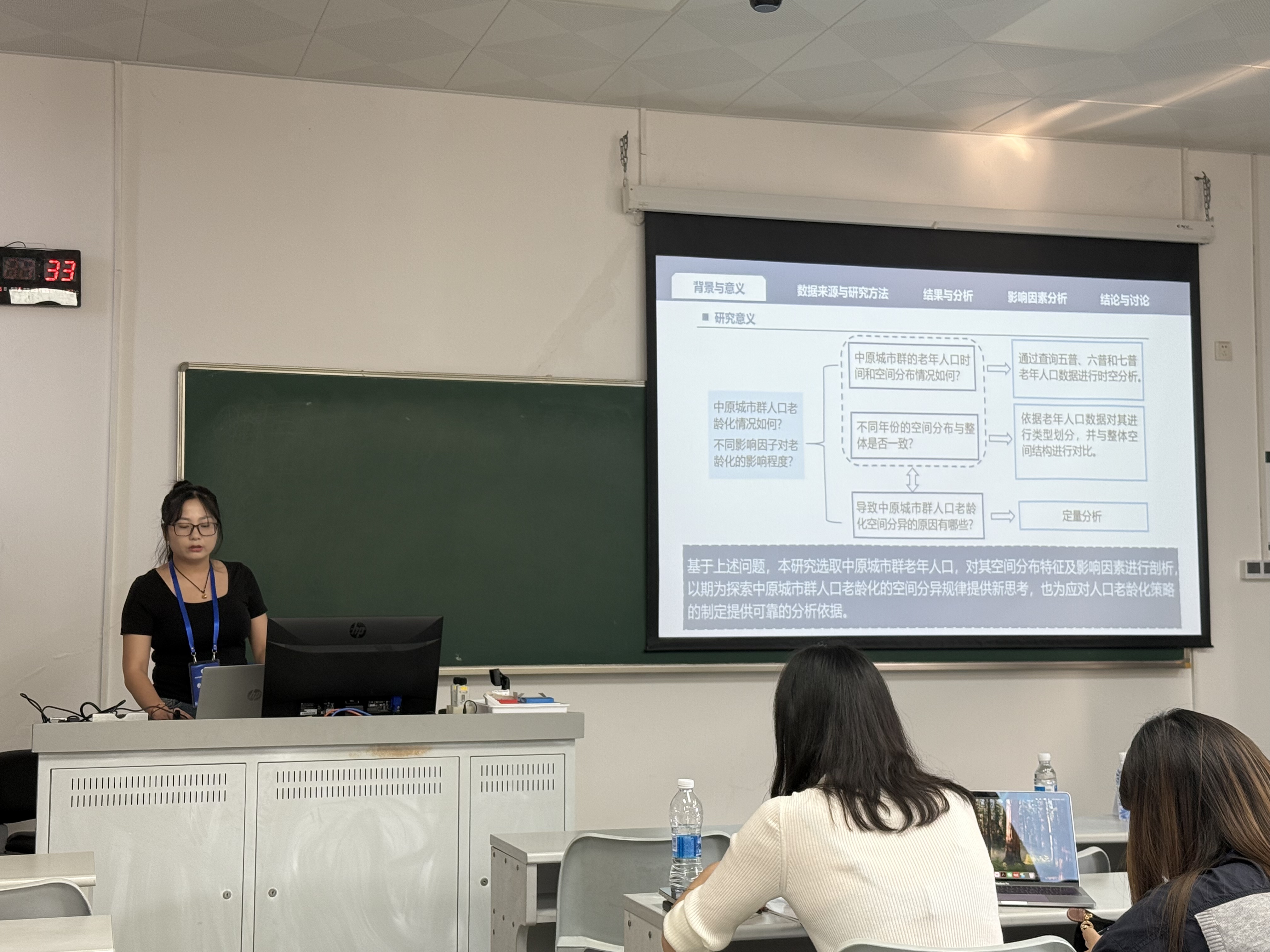硕士研究生刘子龙和杨俊萍参加会议,并围绕各自研究方向积极开展学术交流分别作题为《基于GIS的城市设施环境对成年人体质健康的影响》《中原城市人口老龄化时空演变特征及影响因素研究》的学术报告。