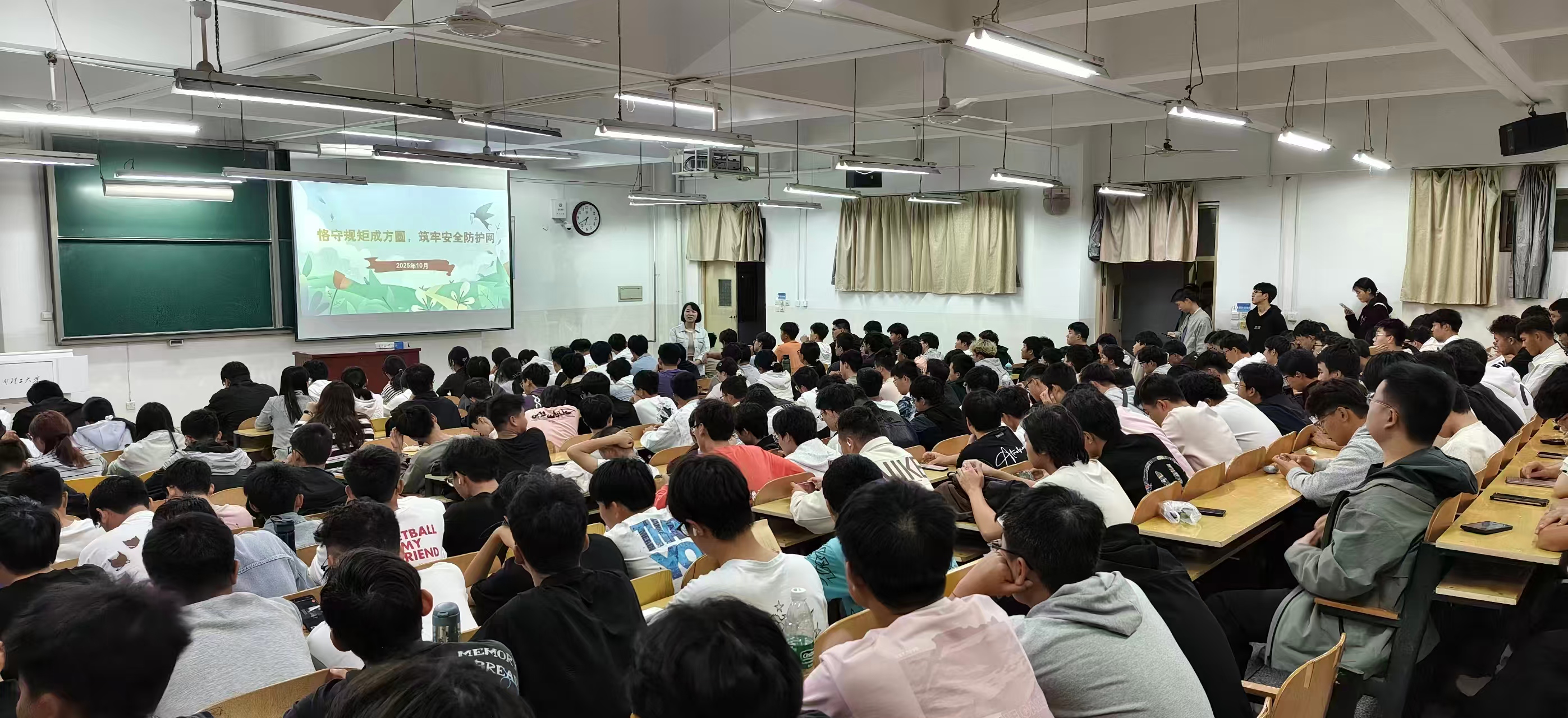 组织开展“恪守规矩成方圆,筑牢安全防护网”主题安全教育班会。此次班会由各年级辅导员主讲,全体学生共同参与。